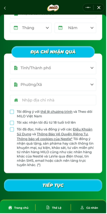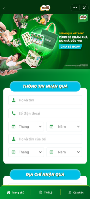 - Mục đích khác mà BTC/Nestlé Việt Nam thông báo trước cho Người Tham Gia và được Người Tham Gia chấp thuận.